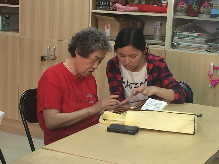这一学期快要进入尾声了,服务队在这次活动中进行了期末串讲的第一讲,带领学员们进行复习。我们教授过学员们手机的基本操作,包括电话、短信、手机通讯录、相机的使用,还有手机APP的下载与使用,例如手机地图,手机记账APP,以及最受老年人青睐的微信。复习串讲主要针对学员各自在学习复习的过程中遇到的问题进行解答,并加以巩固,由学员自行操作,志愿者发现问题并为老人解决问题。学员们的学习效果不错,有部分学习板块有些问题,在志愿者的帮助下顺利得到了解决。