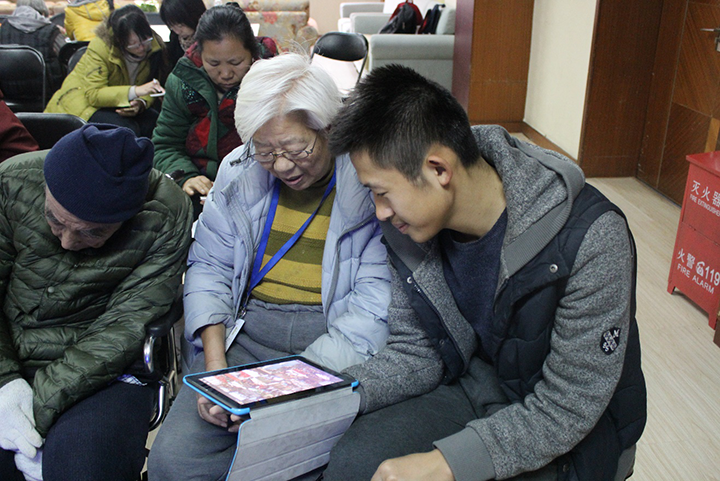 2016年1月5日,志愿者们像往常一样在学校集合,乘坐公交车前往位于香山脚下的爱暮家长者天地,进行本学期的最后一次敬老志愿活动。新年伊始,我们决定教给老人们一些新鲜的东西——小影。