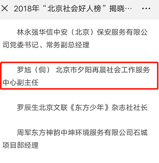 夕阳再晨贺电:罗旭荣获2018年“北京社会好人榜”上榜个人!