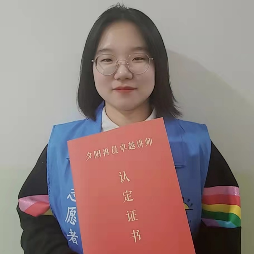 很高兴能成为夕阳再晨的一份子,能在最好的青春年华选择用这样的方式为更多人做出贡献。在本科期间,我用各种方式探索了自己的边界。主持过晚会,站上过舞台,组织过活动……每一次探索,都为我认清自己增添了一份色彩。在进入研究生阶段,我想去做更多有意义的事情,不仅是为了探索自己,更是为了服务社会。人工智能,是我的专业,但听起来却离老年人那么遥远。而我们要做的,就是让人工智能、5G、智能手机等等遥远的事物,变得触手可及。这就是我们星级卓越讲师的使命。